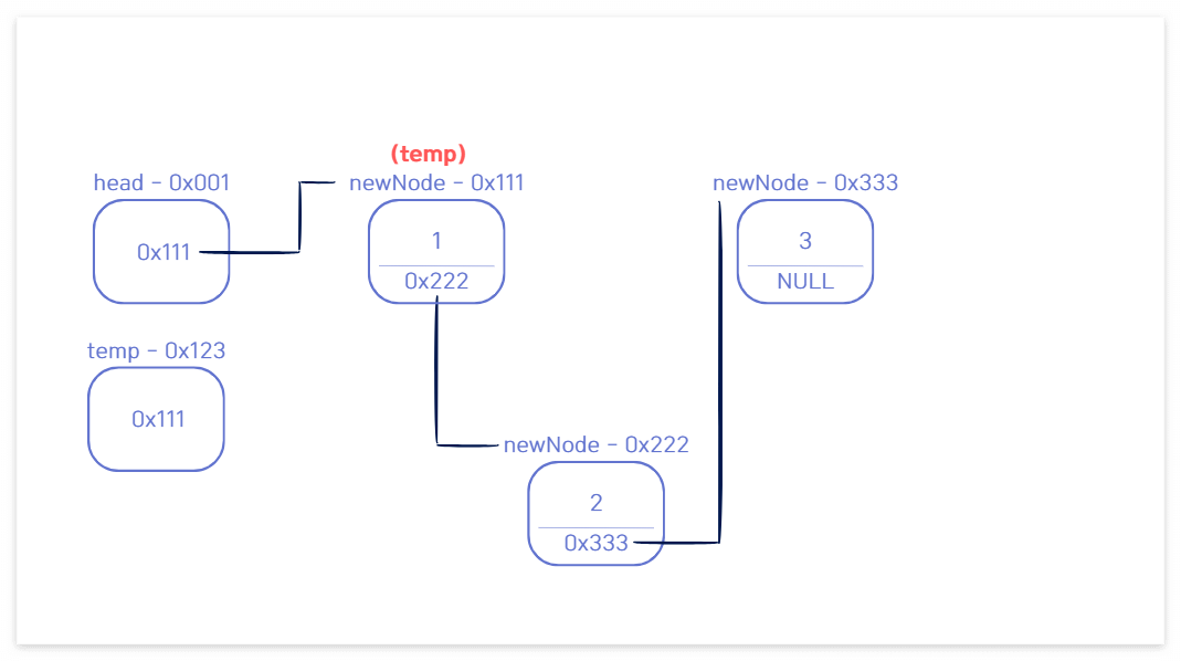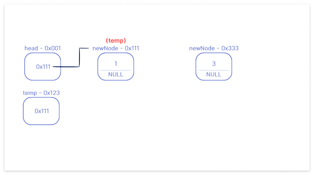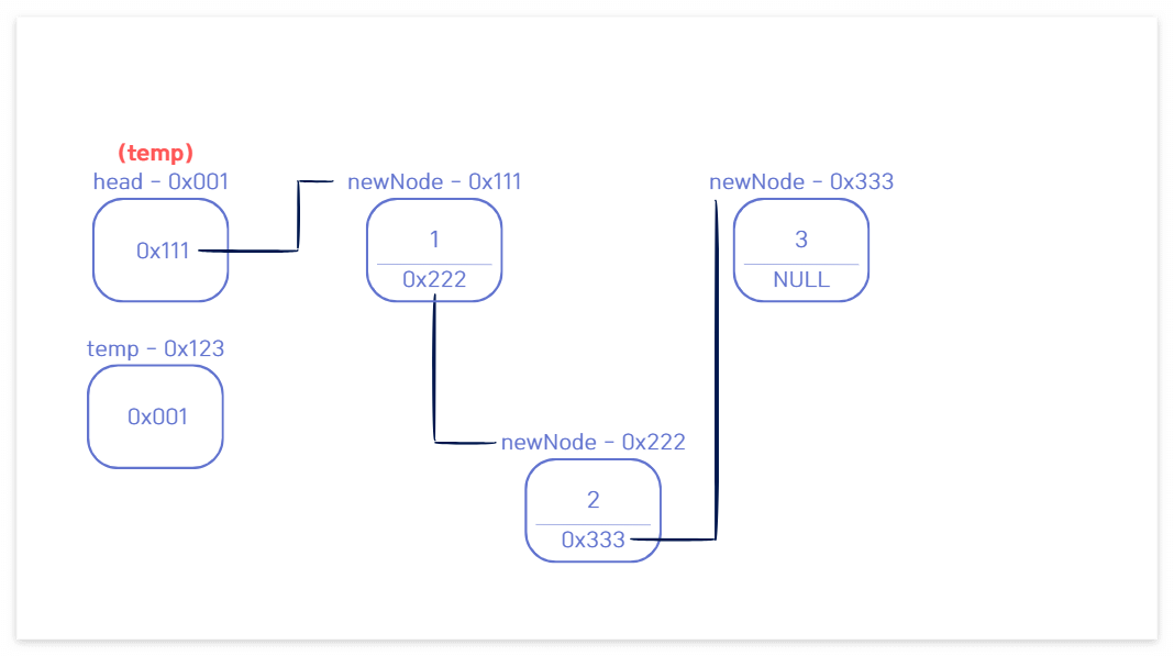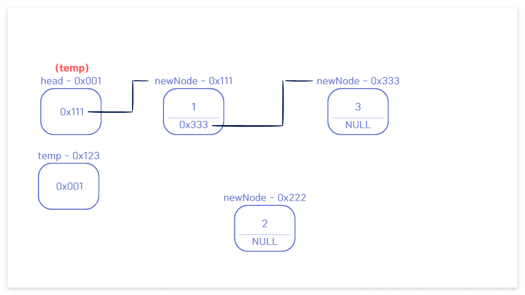 🔁 while문에 의해 temp가 다음 노드로 이동