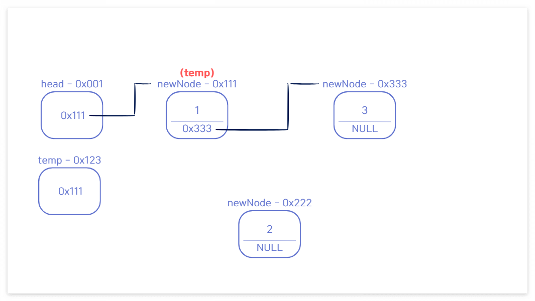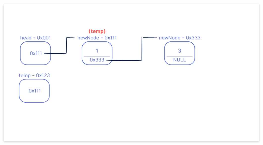 temp의 다음 노드였던 주소 0x333을