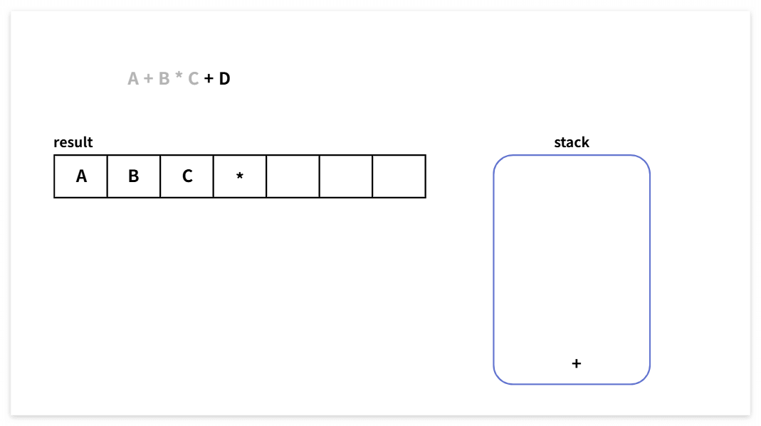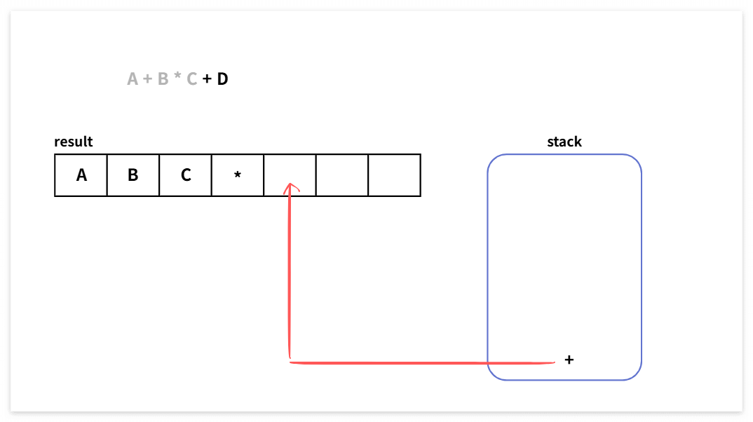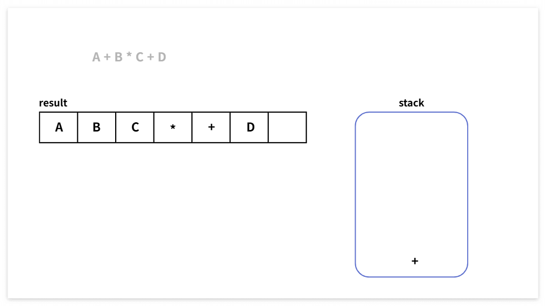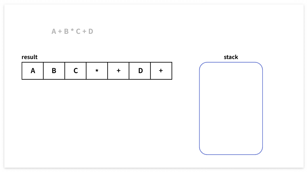 A + B * C + D ➡️ A B C * + D +