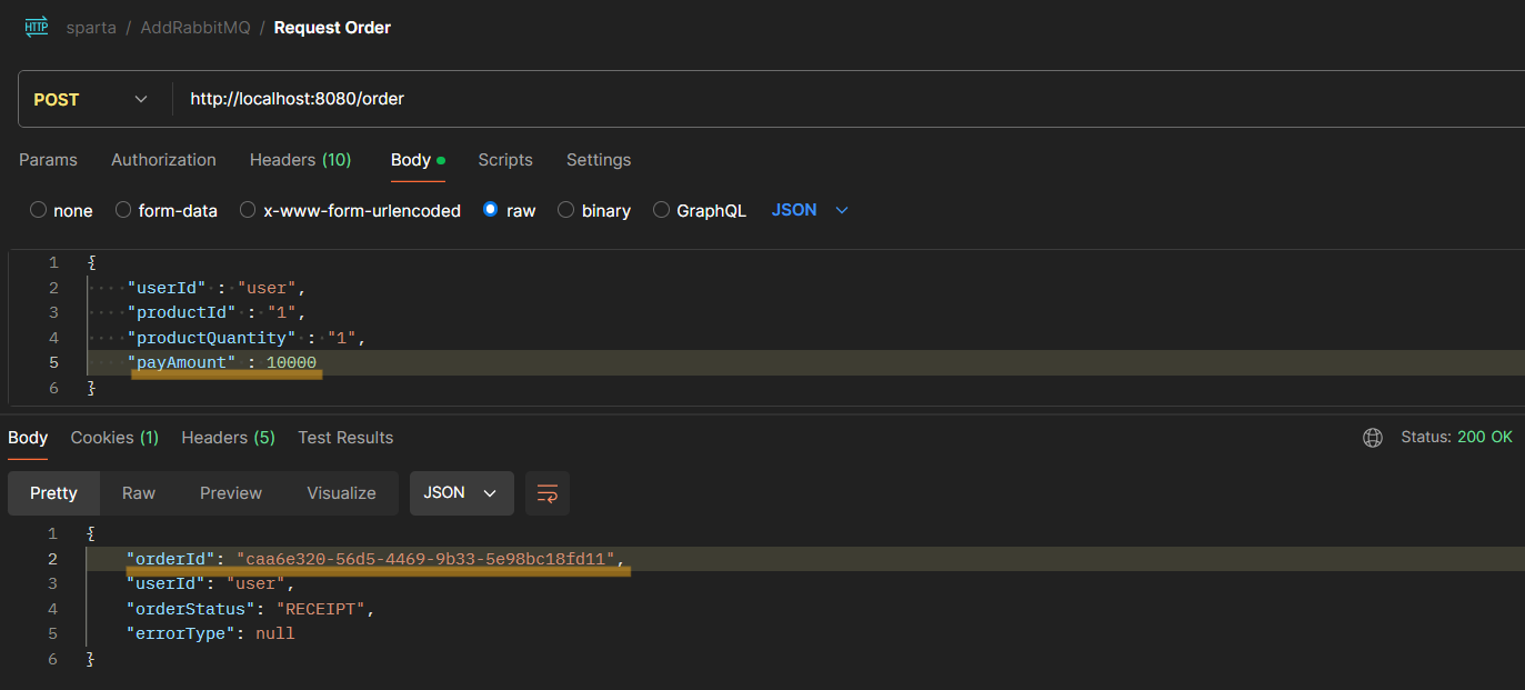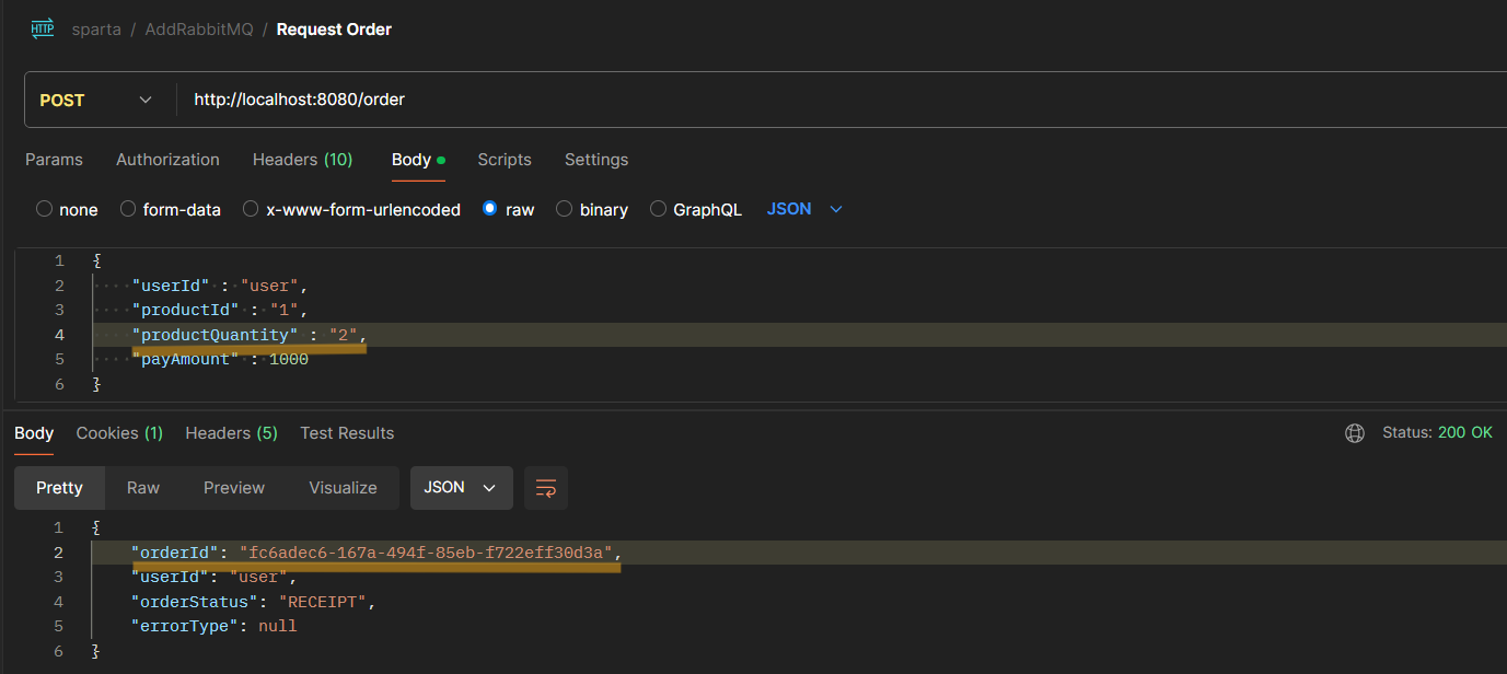 - productQuantity가 1이고, payAmount가 10000보다 작을 경우 모든 로직이 성공적으로 동작한다.