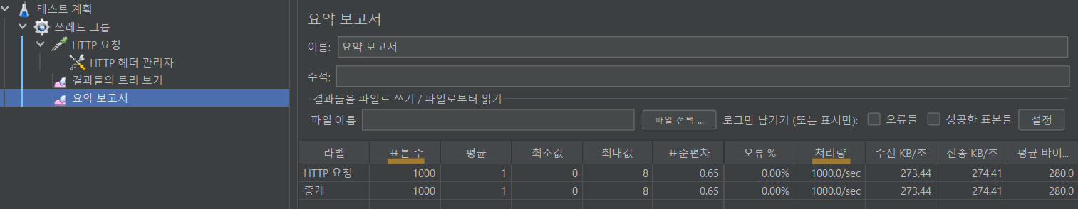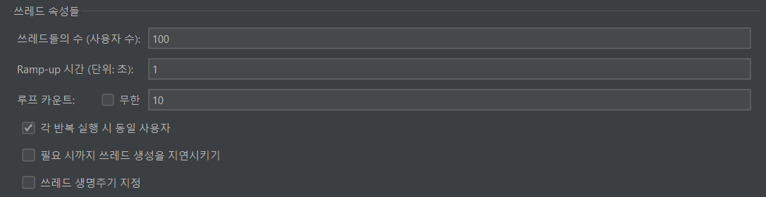 - 100명의 사용자가 각 10번씩 요청하여 1000번의 요청이 이루어지는 테스트 시나리오 입니다.