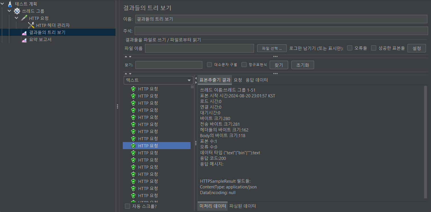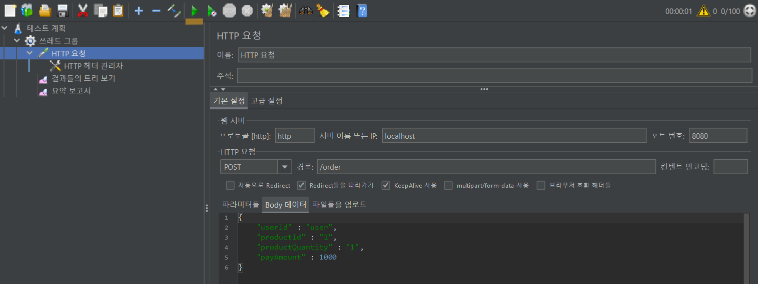 - 100명의 사용자가 각 10번씩 요청하여 1000번의 요청이 이루어지는 테스트 시나리오 입니다.