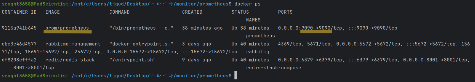 - docker에서 promethus를 삭제하고 다시 실행시켜보기