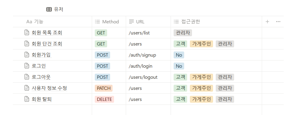 최종적으로 우리 팀의 회원 가입 정책 방향은 처음 회원 가입 시 모든 유저는 CUSTOMER라는 권한만 부여받게 된다. 이후 CUSTOMER가 OWNER로 권한 업그레이드를 신청하면 "권한 신청 대기 중" 상태가 되며 MASTER의 승인 하에 OWNER로 승격하게 되게끔 로직을 완성하였다.
