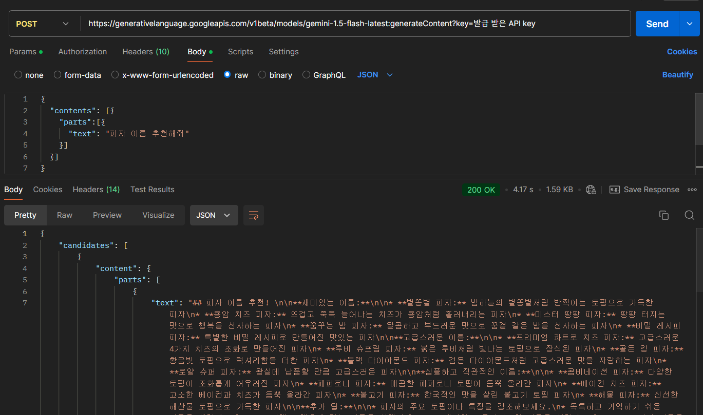 // 서비스에서 Gemini API 호출하고 응답 받기