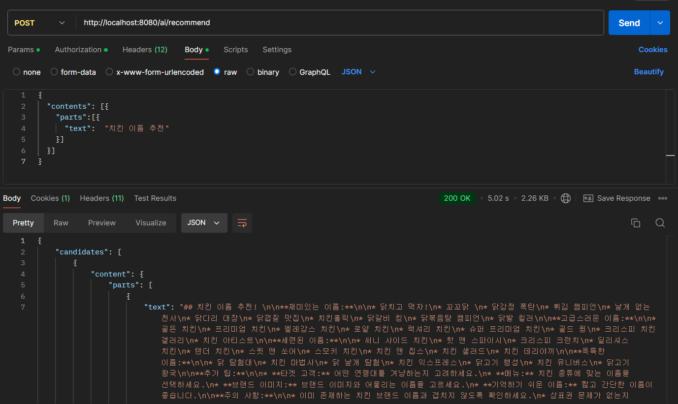 - RestTemplate을 사용하여 Gemini API를 호출한다.