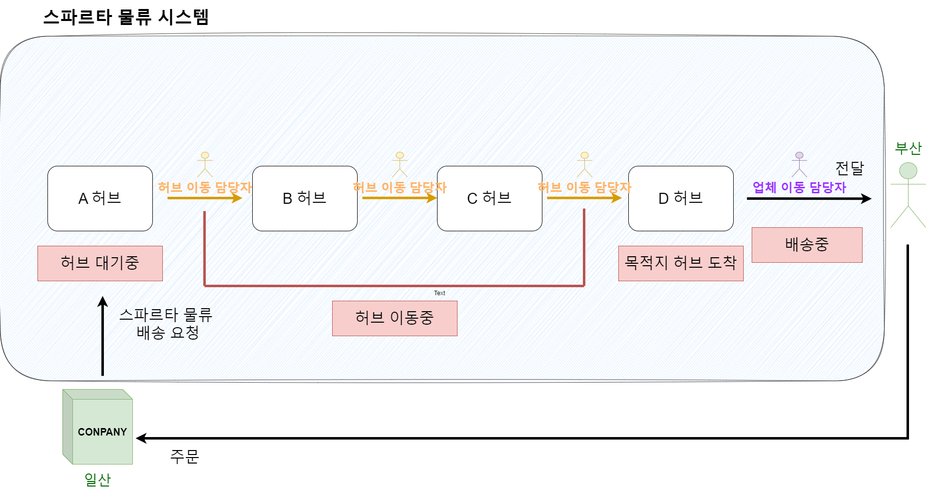 - 이에 따라 플라스틱 가공업체는 스파르타 물류에 허브저장 가공품의 배송을 요청합니다.