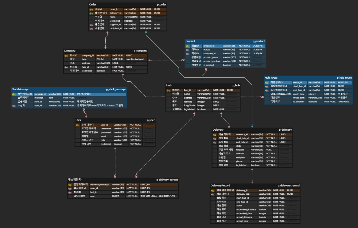 - 스파르타 물류는 각 지역에 허브센터를 가지고 있으며 각 허브 센터는 여러 업체의 물건을 보관합니다.