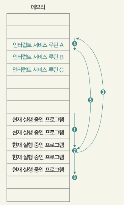 - 인터럽트 벡터가 인터럽트 서비스 루틴의 시작 주소를 포함하고 있기 때문에 CPU는 인터럽트 벡터를 통해서 처음부터 특정 인터럽트 서비스 루틴을 실행할 수 있습니다.