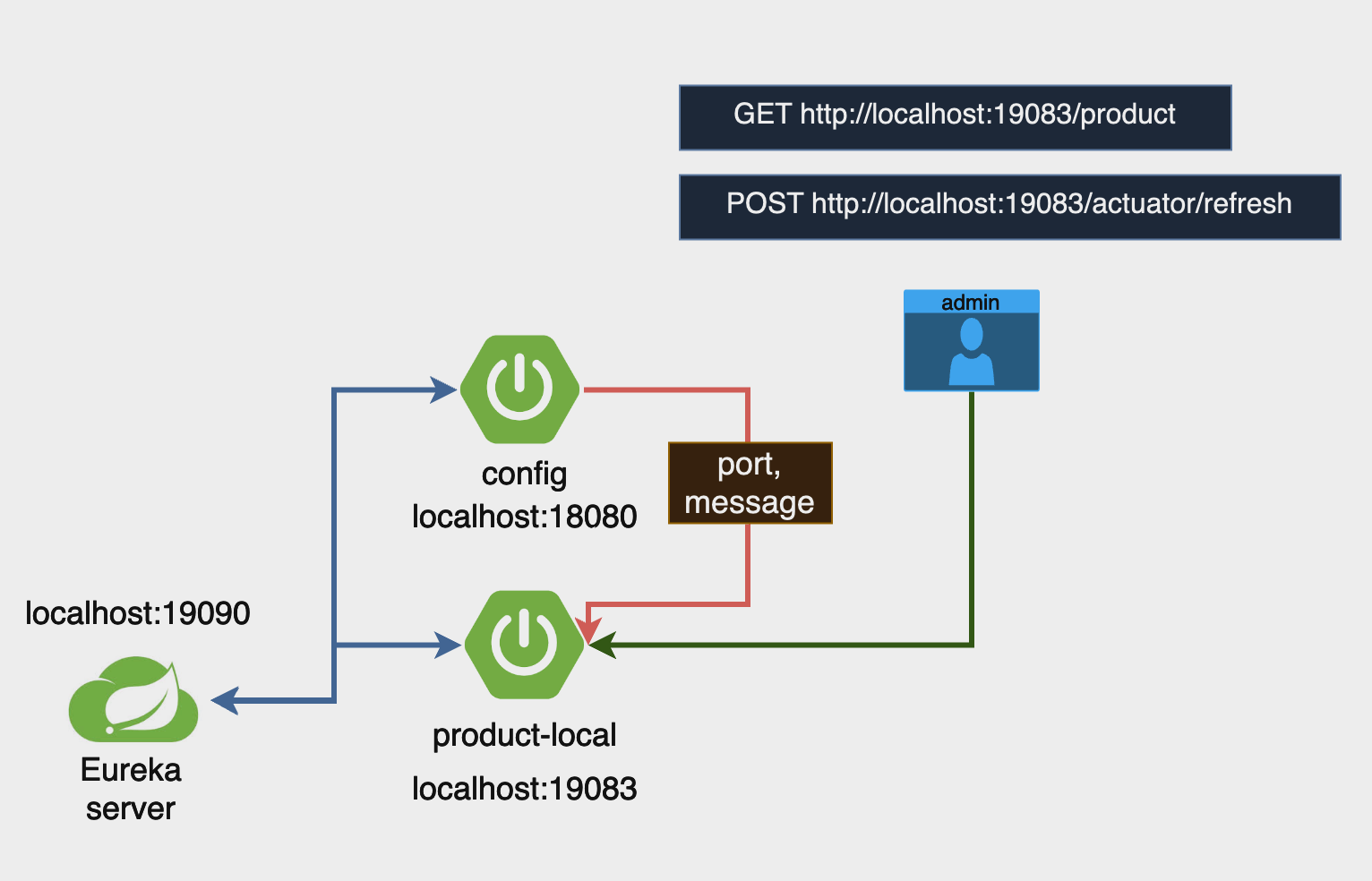 - 해당 엔트포인트로 접근 시 Config 서버에 설정한 yml의 포트번호와 메시지를 가져오면 성공