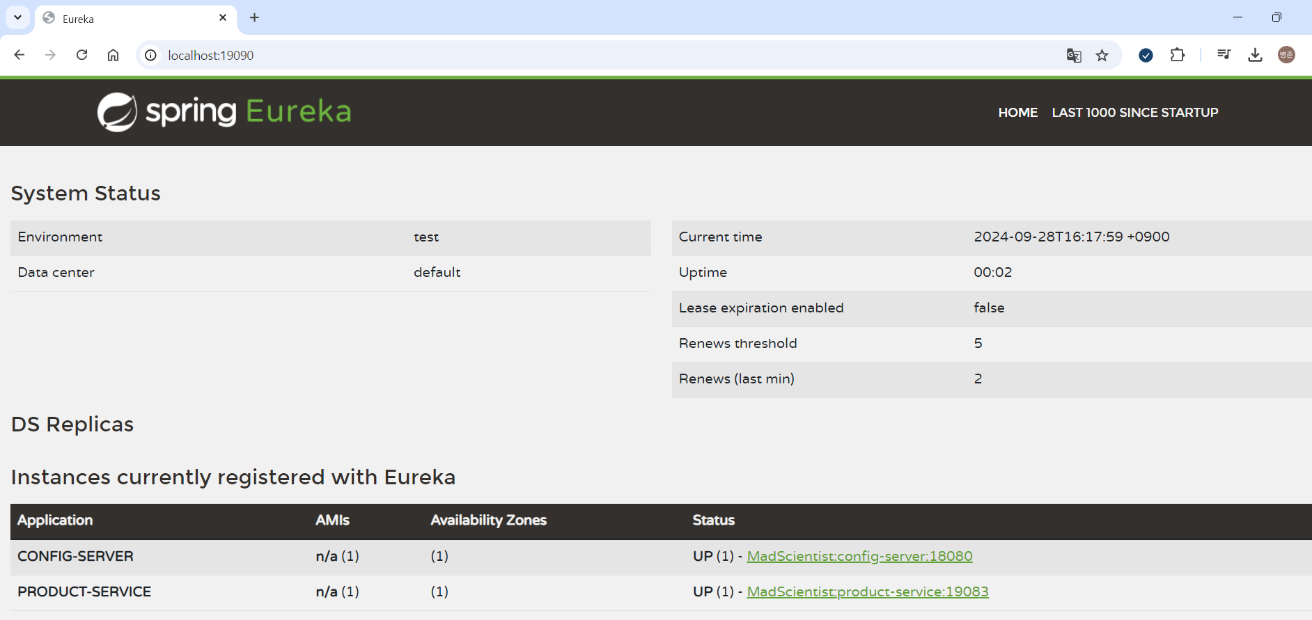 - PRODUCT-SERVICE의 포트번호가 Config 서버의 yml에서 설정한 19083번으로 나오는걸 확인할 수 있다.