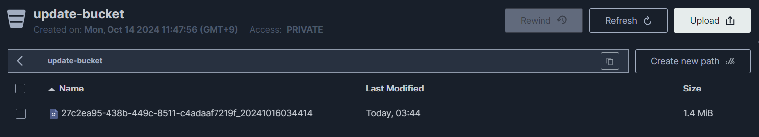 - MINIO 스토리지에 CopyFile이 업로드된 모습을 볼 수 있다