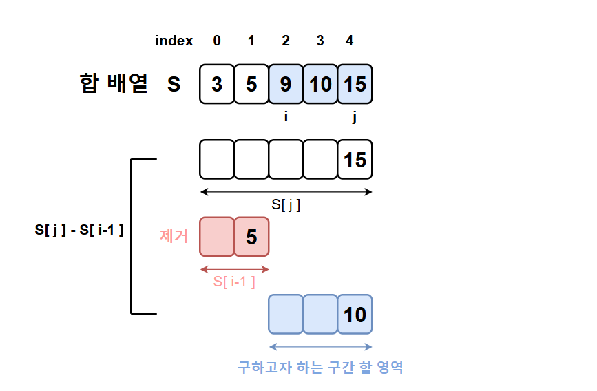 - S[ j ] - S[ i-1 ] // i에서 j까지 구간 합