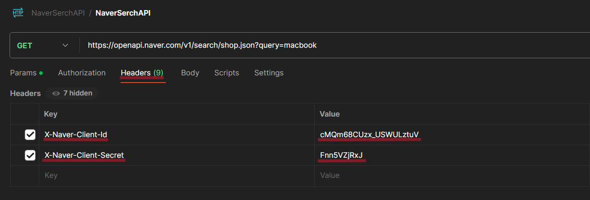 2. Header에 Client ID, Client Secret 넣어주기