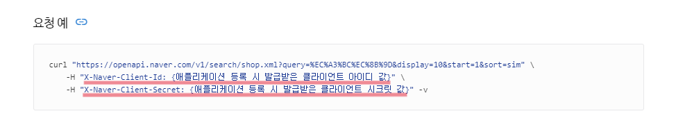 - NaverAPI에서 정한 방식을 지정해준다.