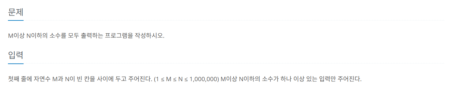 for (int i = 2; i < M+1; i++) { // 1은 소수가 아니므로 2부터 시작