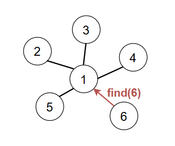 재귀 함수를 빠져나오면서 거치는 모든 노드의 값을 루트 노드 `1`의 값으로 변경하면, find(6)의 구조는 다음과 같이 변경됩니다.