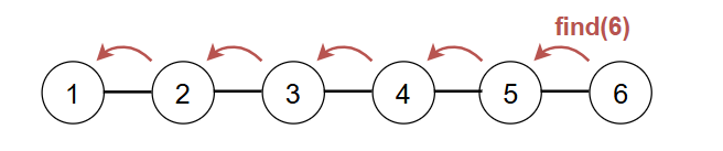 경로 압축이 적용되지 않은 상태에서는, 재귀 함수를 통해 find(6)의 대표 노드를 찾는 과정이 다음과 같이 진행됩니다.