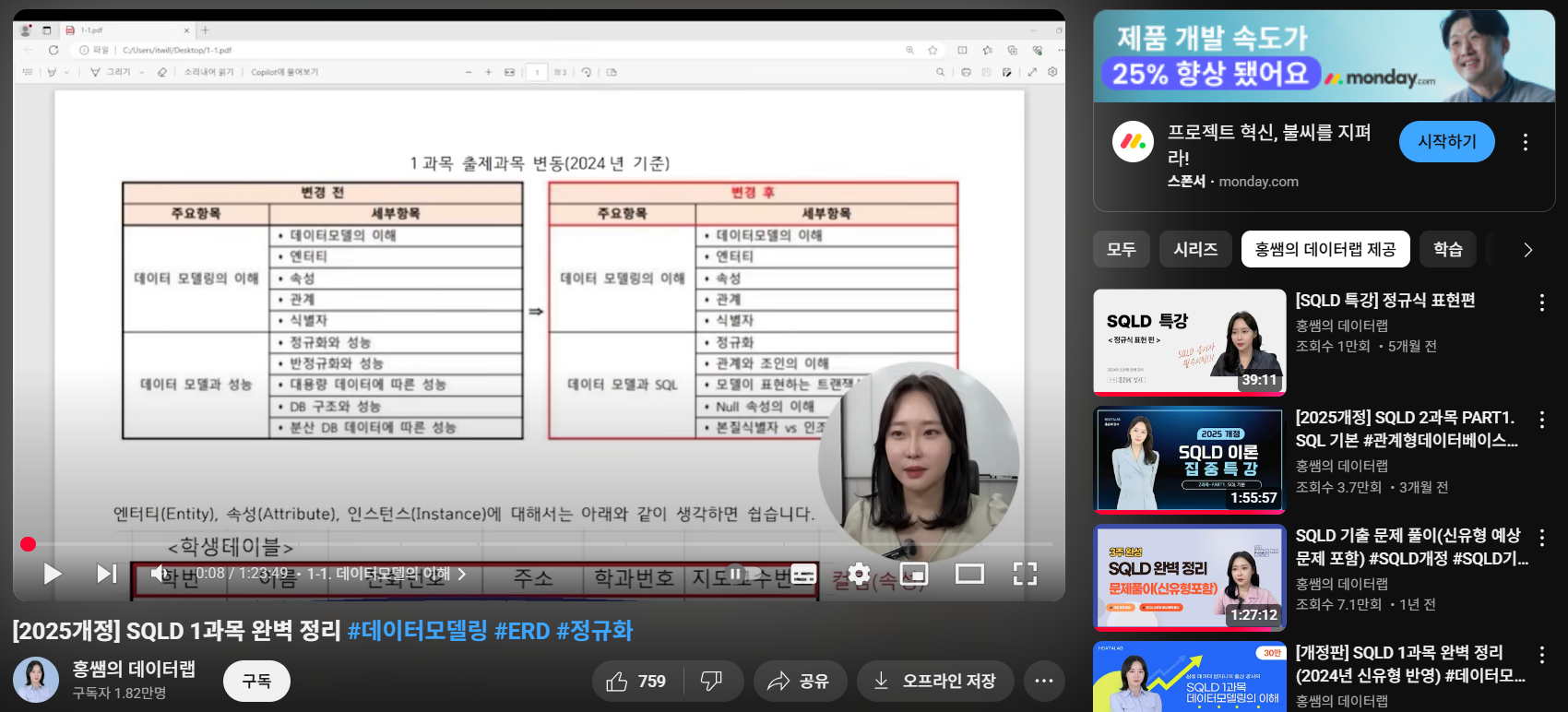 이론과 실습으로 진행한 사실상 SQLD 시험준비용으로 진행한 강의 라고 한다.