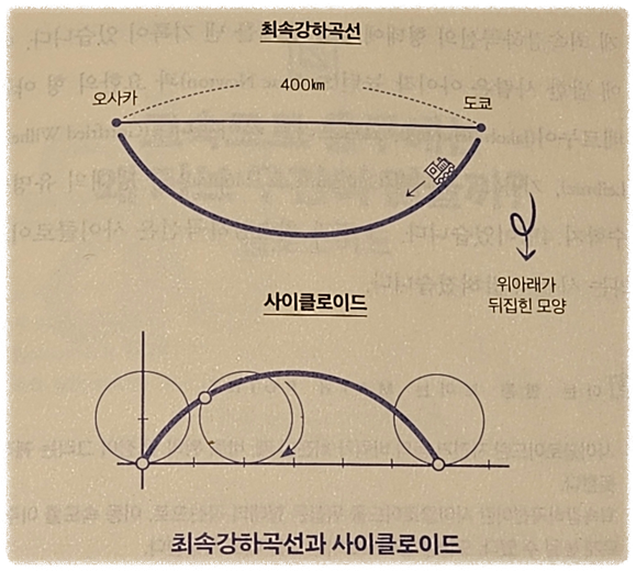 - 최속강하곡선: 그 사이클로이드를 뒤집은 형태
