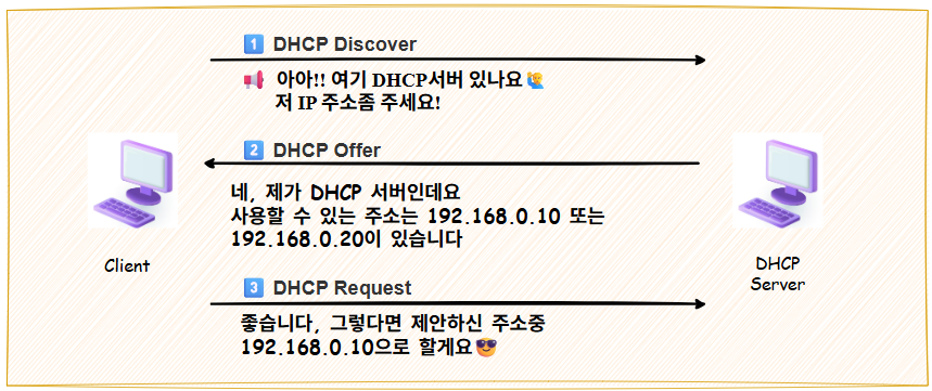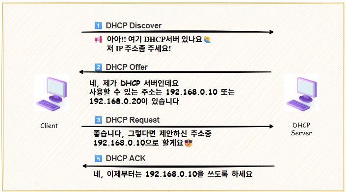 즉, 내가 어떤 IP 주소를 사용할지 DHCP 서버가 정해주는 것이죠.